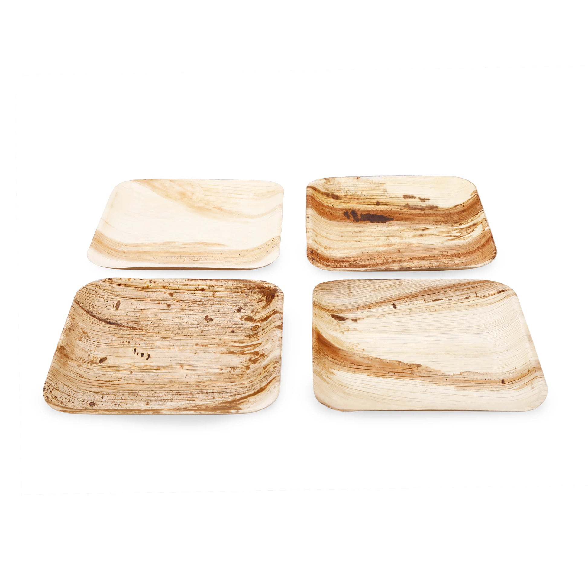 An Areca Plate - Square Shallow 7 Inches is an eco-friendly, biodegradable plate made from naturally fallen areca palm leaves. Featuring a 7-inch square and shallow design, it is perfect for serving snacks, appetizers, or desserts. Durable and compostable, this plate provides a sustainable and stylish option for events, parties, or daily use.